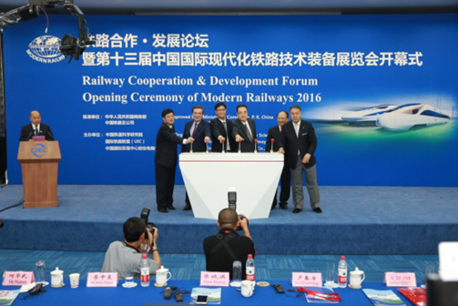 2016年,在第十三屆中國國際現代化鐵路技術裝備展覽會期間,國家發改委、商務部、國際鐵路聯盟等機構高層官員以及“一帶一路”相關國家鐵路公司、中國鐵路行業相關企業的高管圍繞“一帶一路”背景下的產能合作、基礎設施互聯互通、鐵路合作與發展等主題進行了精彩演講和深入研討。